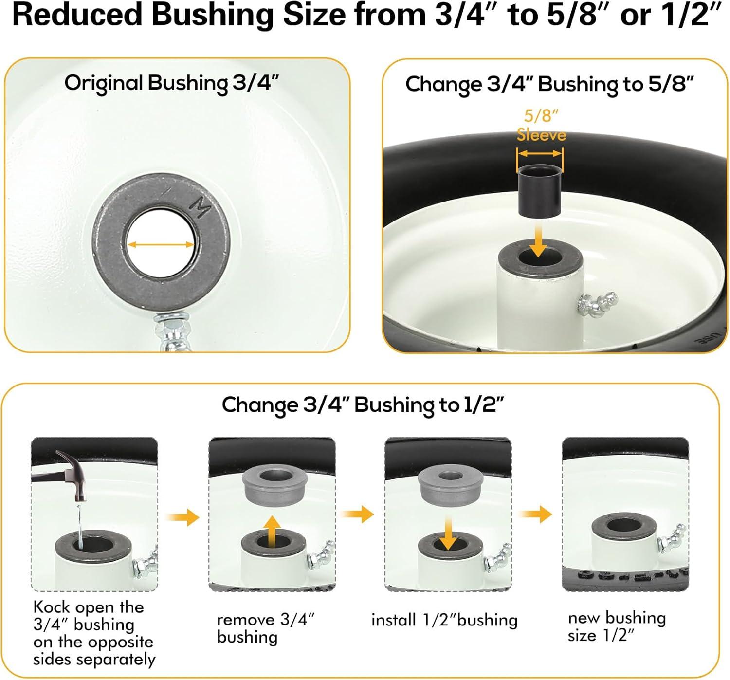 ✅2 PCS 13×6.50-6 garden tractor tire with wheel, flat free. 5.5″ centered hub; 3/4″ Bushing; Tire Outer Diameter: 13″; Section Width 5.8″; 450lbs Capacity. ✅With the included adapter kit, the hub length can be : 5.5″-5.9″-6.6″-7.1″ adjustable, bushing size can be: 3/4″ or 5/8″ or 1/2″ adjustable.