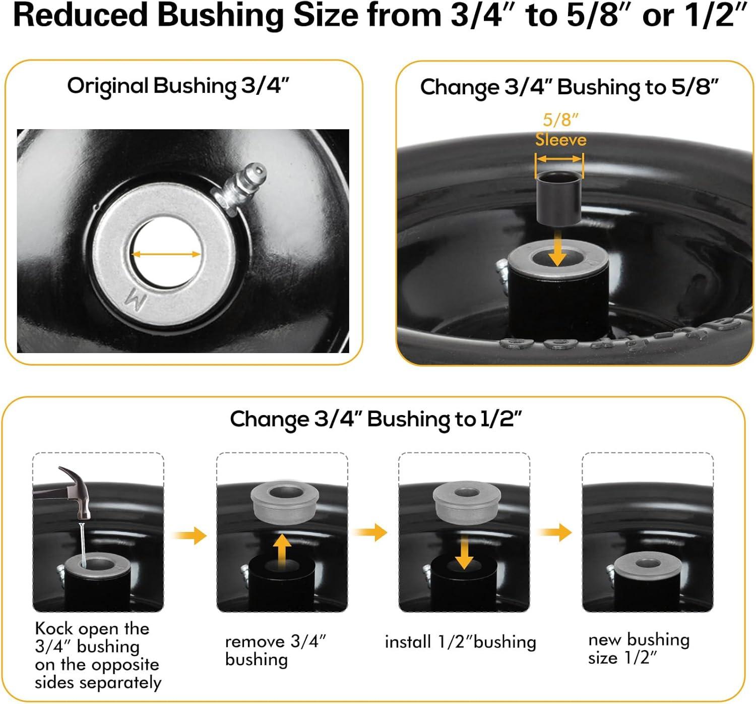 imageWEIZE Universal Fit 11x4005 Flat Free Tire and Wheel Assembly Zero Turn Lawn Mower Replacement Tires 34quot4quot45quot5quot Centered Hub 34quot or 58quot or 12quotBushings Adapter Kit included Set of 2Yellow
