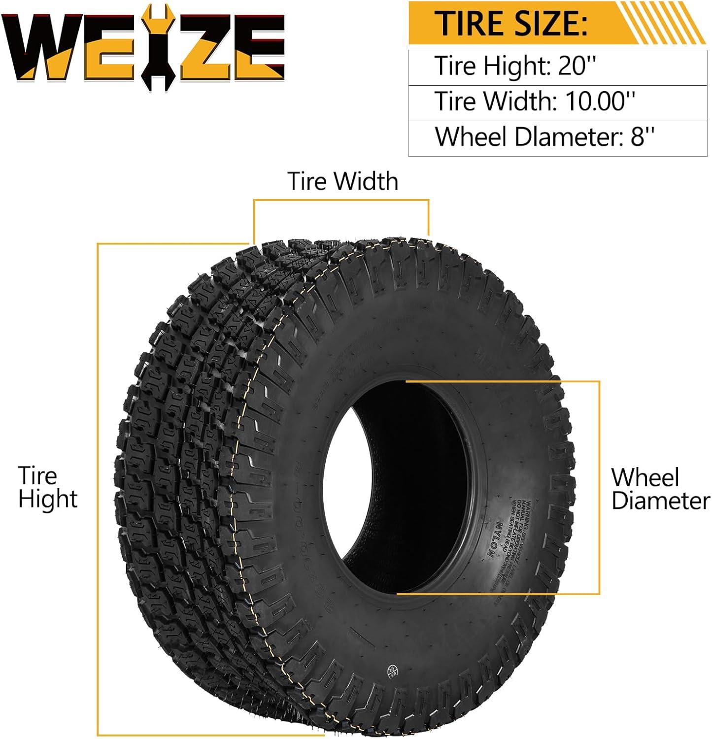 WEIZE 20x10.00-8 Lawn Mower Tire, 20x10-8 Tractor Turf Tire, 20x10x8 NHS Tires, 4 ply Tubeless, 1200lbs Capacity, Set of 2