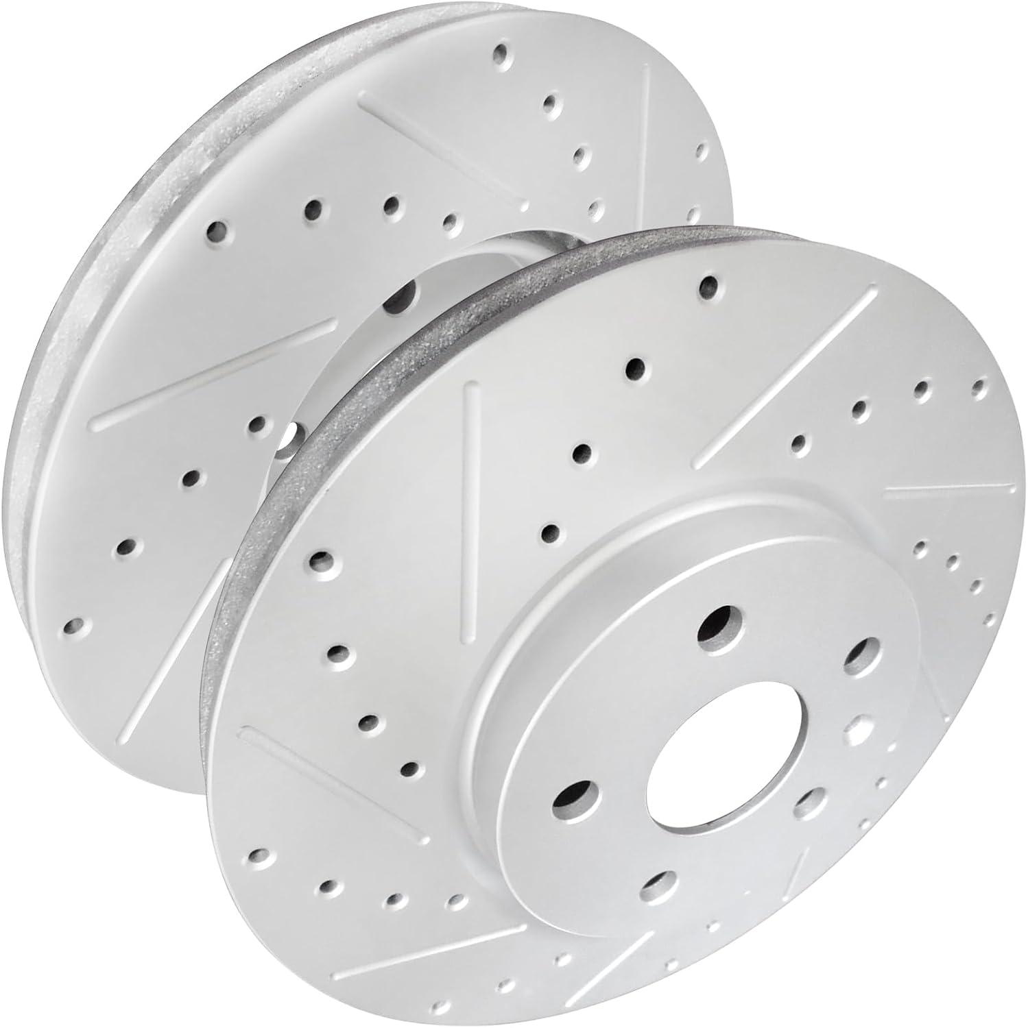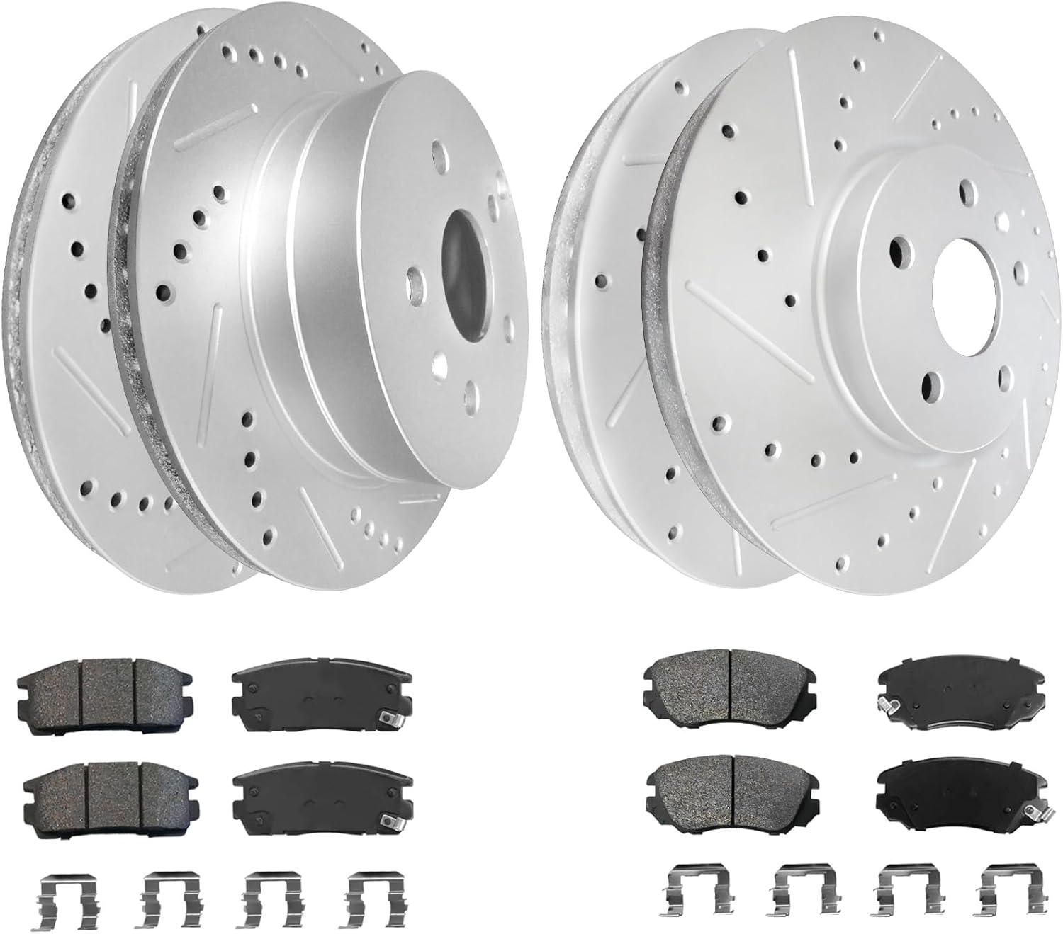 Kit Includes: 2x Front Drilled & Slotted Disc Brake Rotors, 2x Front Brake Pads (Hardware Included). Warranty: 4-Year or 48,000 miles warranty!