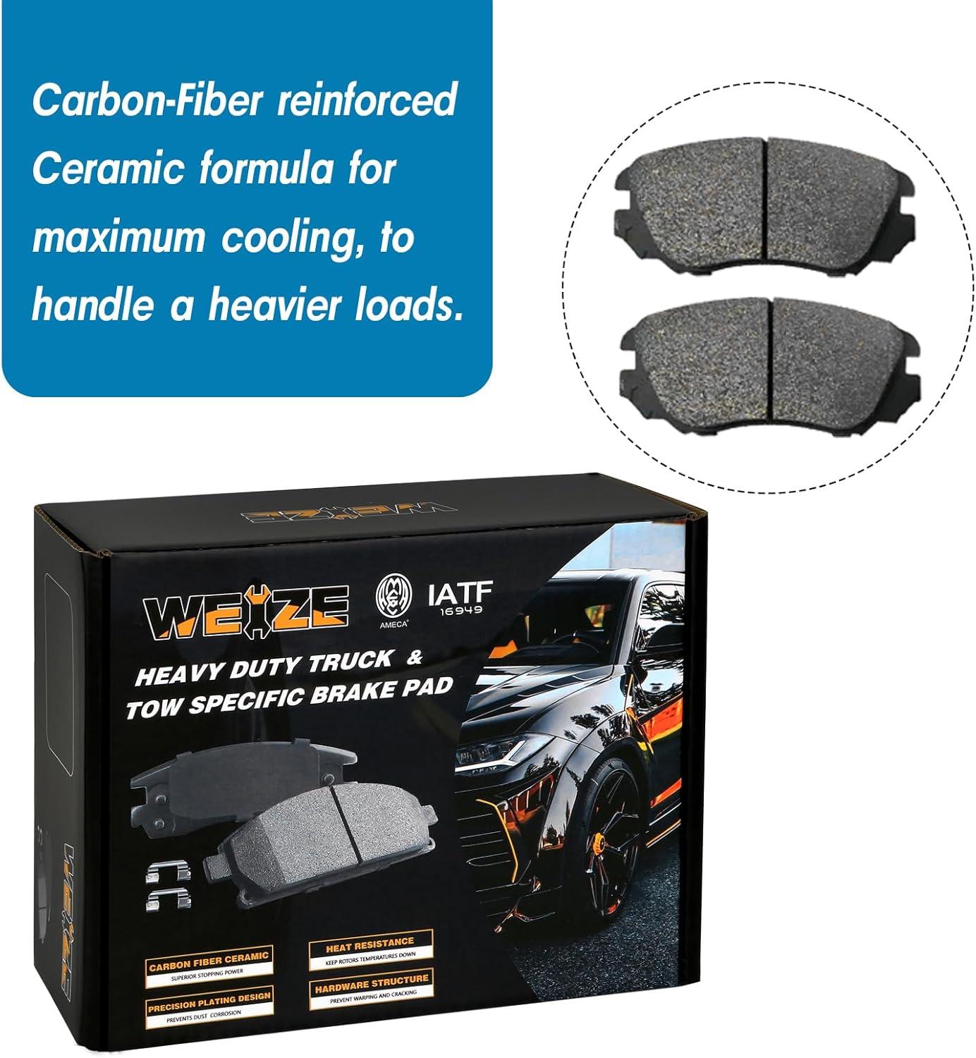 imageWEIZE Front Disc Brake Pads and Rotors Kit for Truck ampamp Tow with CarbonFiber Ceramic Brake Pads Fit for Chevy Silverado Suburban 1500 GMC Yukon Sierra Cadillac Escalade ESV EXT XTSToyota Camry 1217 Rear