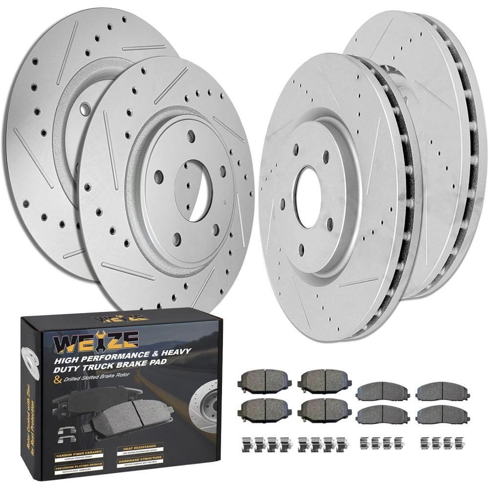 WEIZE Front Disc Brake Pads and Rotors Kit for Truck & Tow, with Carbon-Fiber Ceramic Brake Pads, Fit for Chevy Silverado Suburban 1500 GMC Yukon Sierra Cadillac Escalade ESV EXT XTS(Dodge Grand Caravan 12-20 Front&Rear)