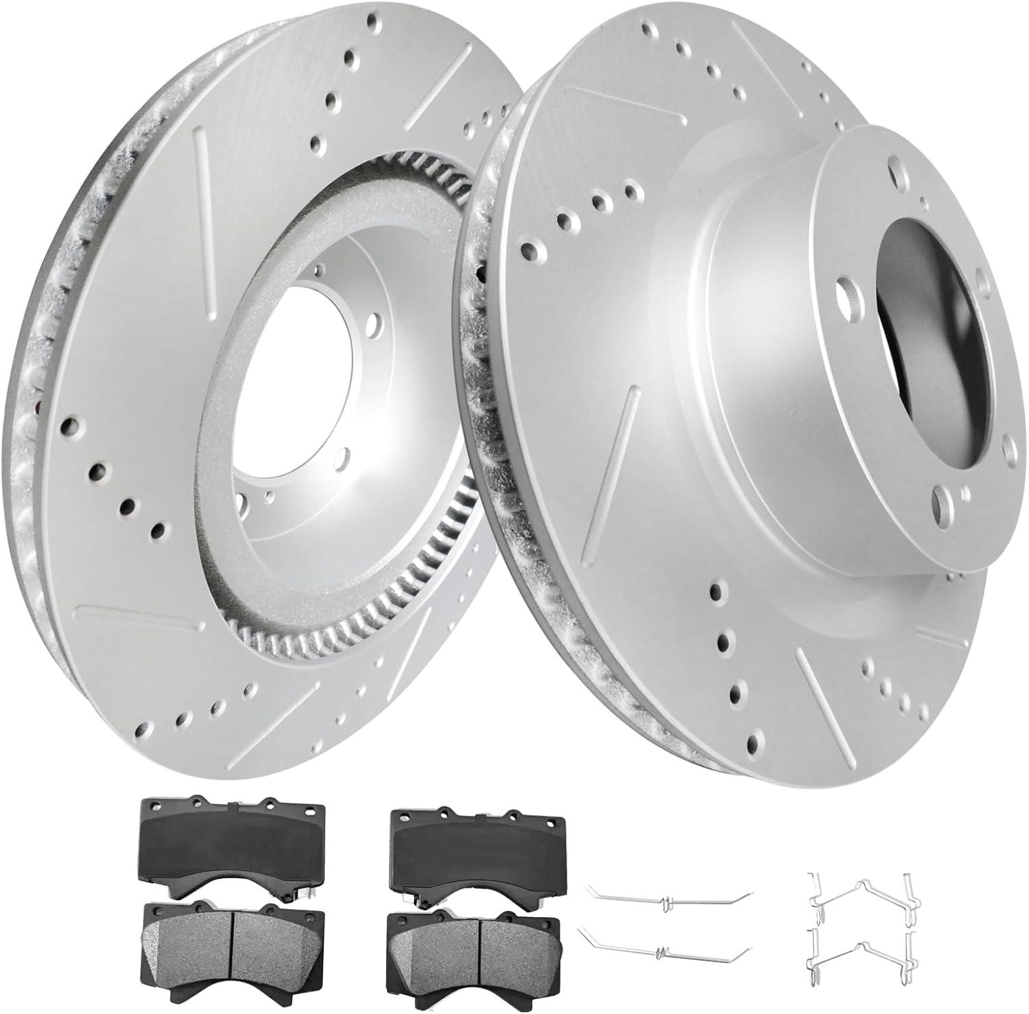 Weize w Front and Rear Drilled & Slotted Brake Rotors + Ceramic Brake Pads Kit, Fit for 2007-2021 Toyota Tundra Land Cruiser Sequoia, 2016-2021 Lexus LX570