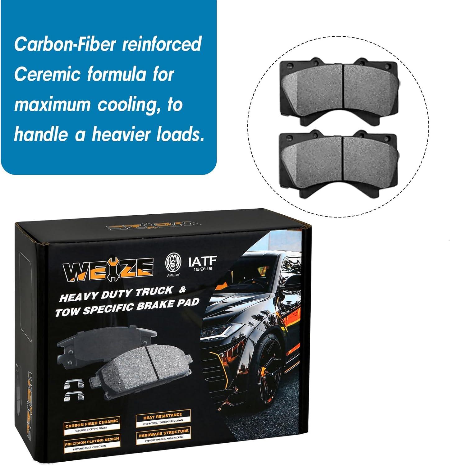 WEIZE Front Truck & Tow Brake Kit, Carbon Fiber Ceramic Brake Pads & Drilled/Slotted Brake Rotor, Fit for Toyota Tundra