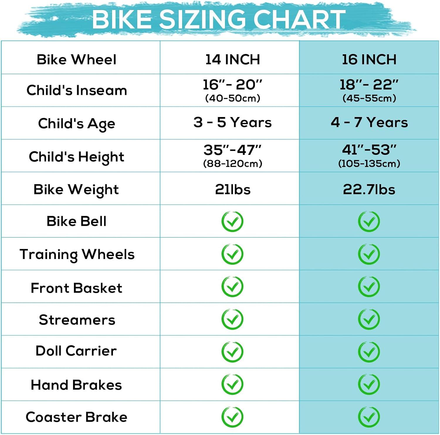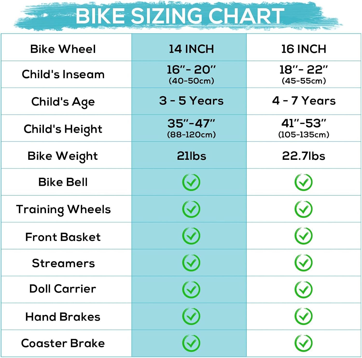 【Size Recommend】: 16″ bike for 4-7 years (41″ – 53″) boys & girls.Note: Measure kid’s INSEAM and compare with SADDLE HEIGHT to check if the rider can touch the ground.