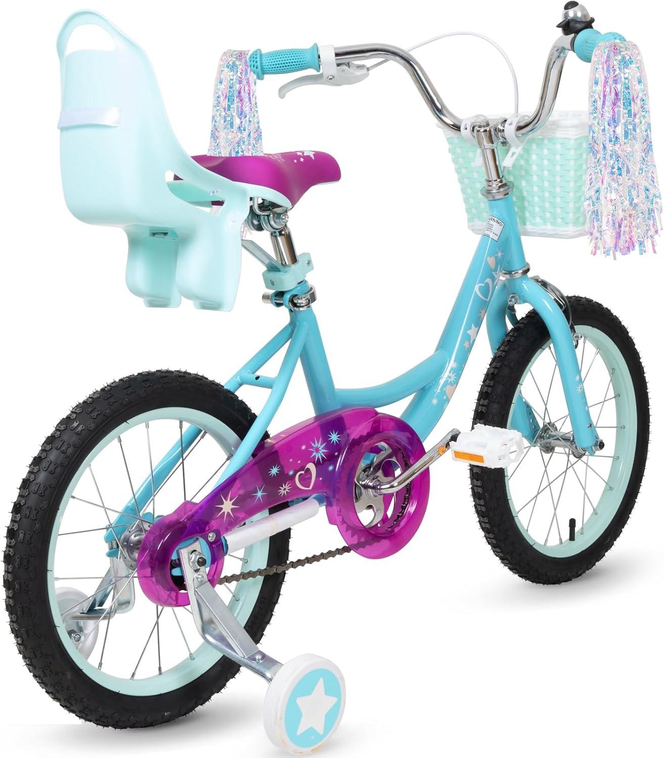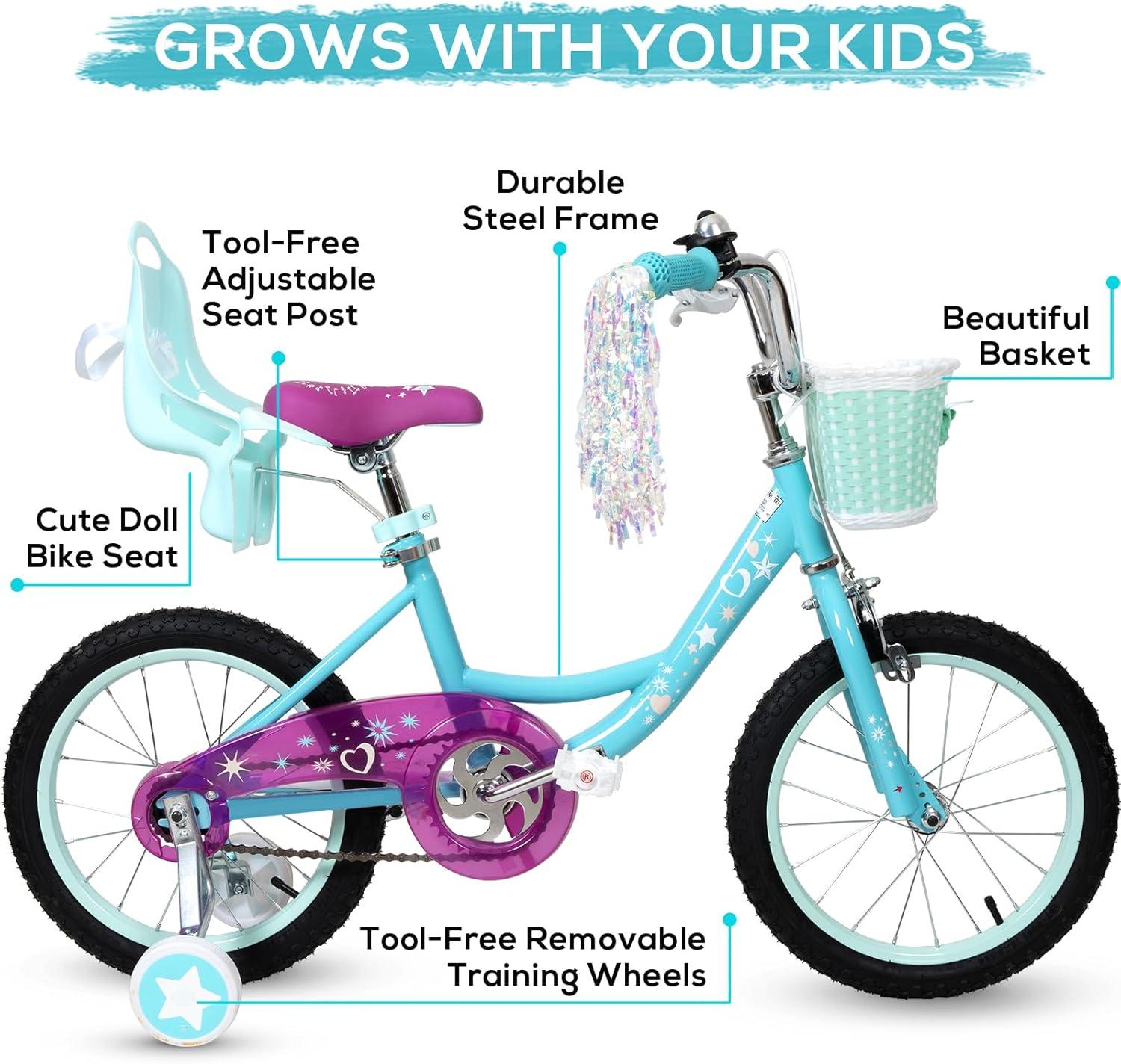 imageWEIZE Girls Bike for 312 Years Old Kids 14 16 20 Inch Kids Bike with Training Wheels Streamers Basket and Doll Seat Children Bicycles with Coaster Brake Multiple ColorsBlue