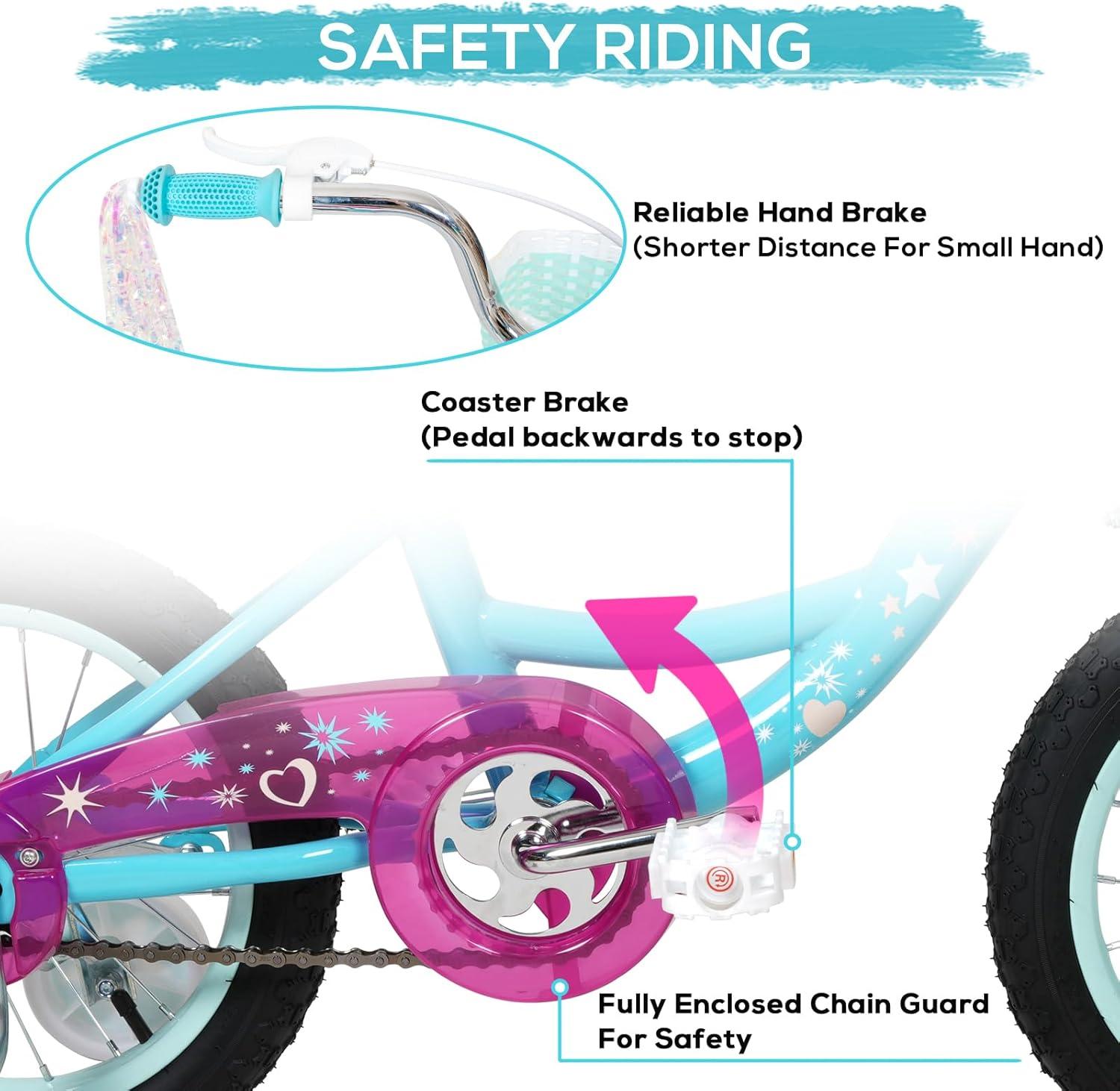 【Protected】: Easy to operate handbrake, which is suitable for small kids who don’t have enough power to control brake by hand. In the meantime,the full coverage chain guard to protect little hands, feet, and clothingand provide a safer pedaling environment.