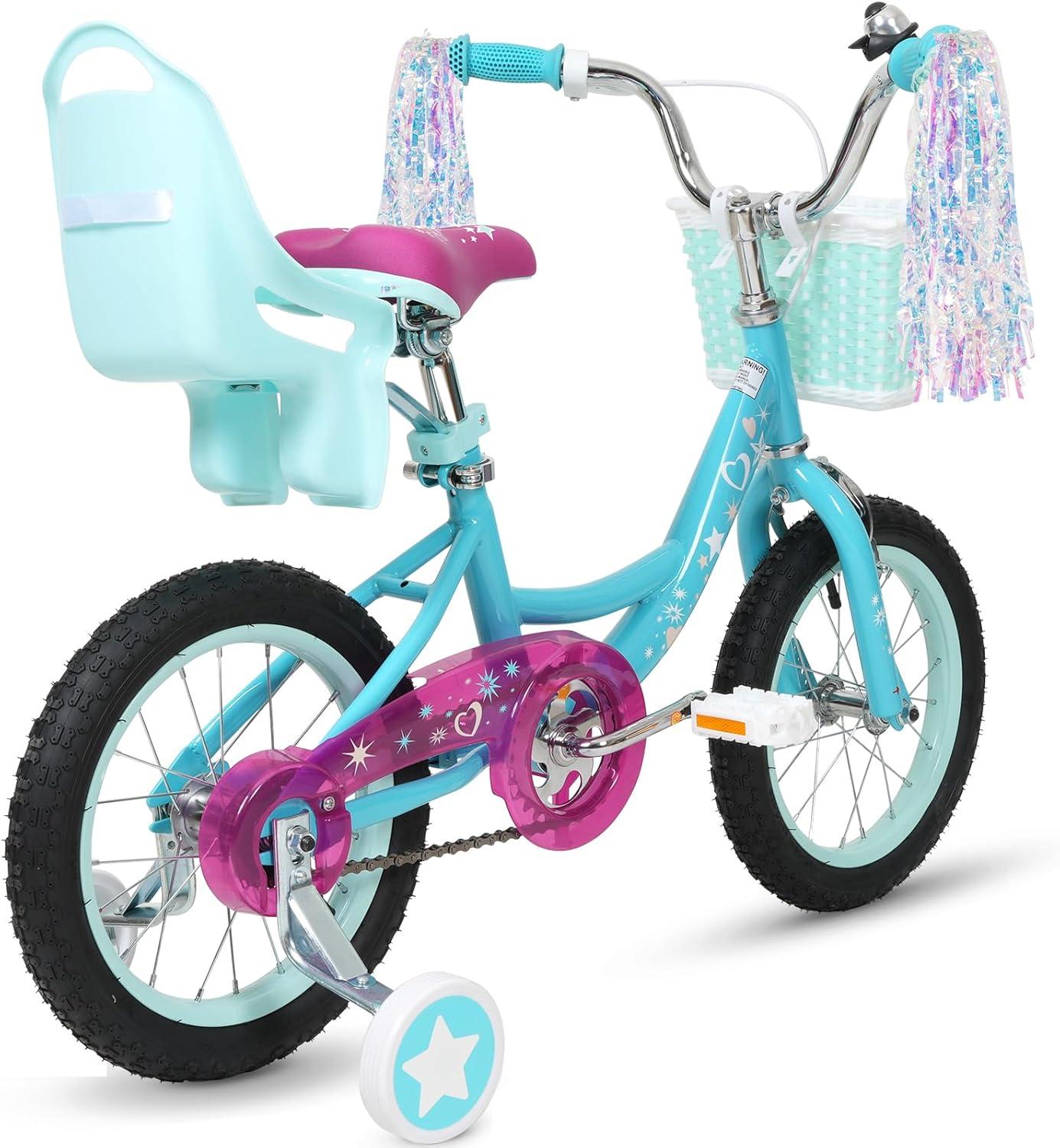 imageWEIZE Girls Bike for 312 Years Old Kids 14 16 20 Inch Kids Bike with Training Wheels Streamers Basket and Doll Seat Children Bicycles with Coaster Brake Multiple ColorsPink