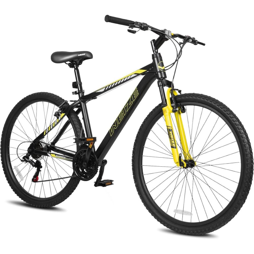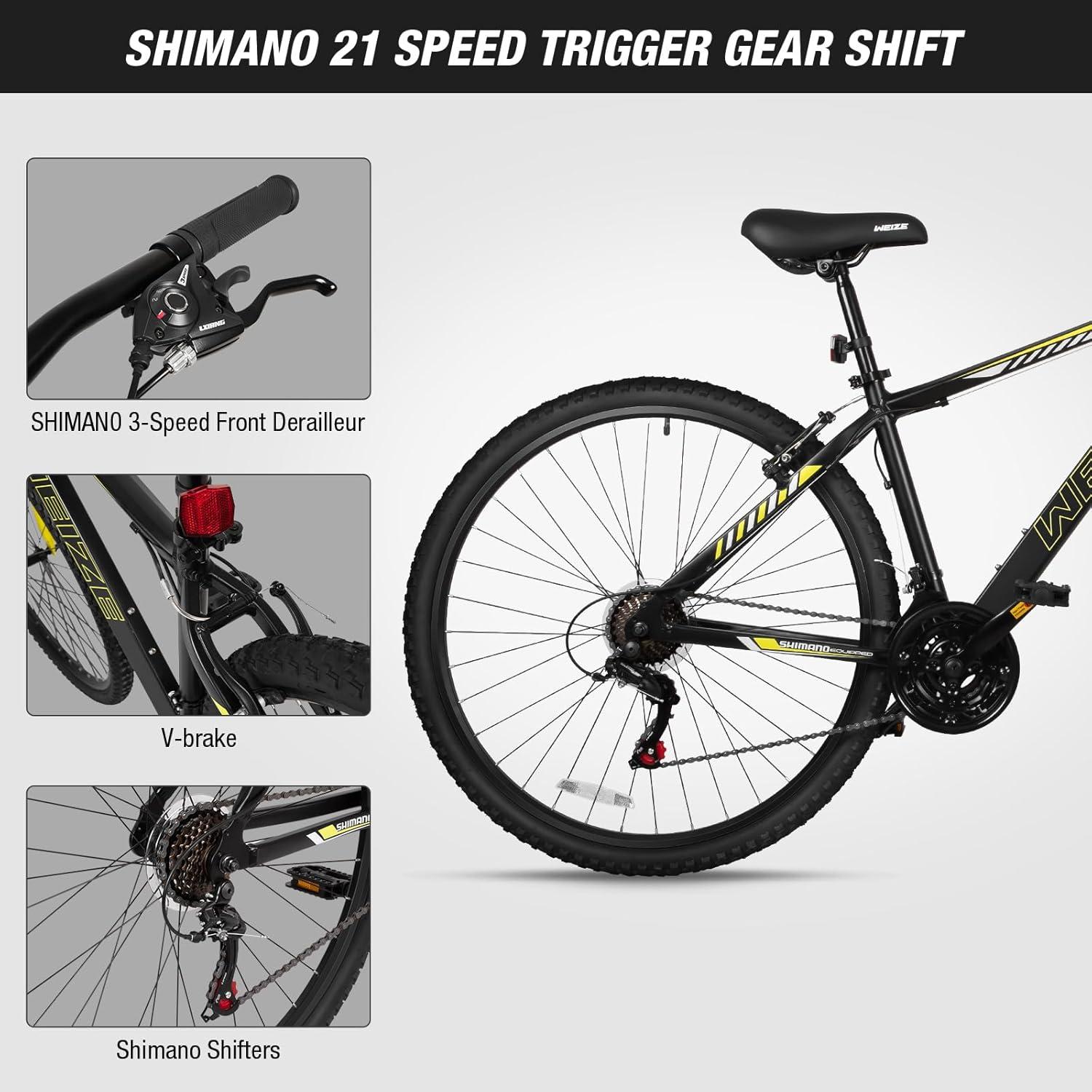 imageWEIZE Hardtail Mountain Bike 29 Inch Wheels Outdoor Cycling Bike 21Speed Trigger Shifter Aluminum Frame for Men and Women Comfort Saddle MTB Bicycle with Suspension ForkBlack