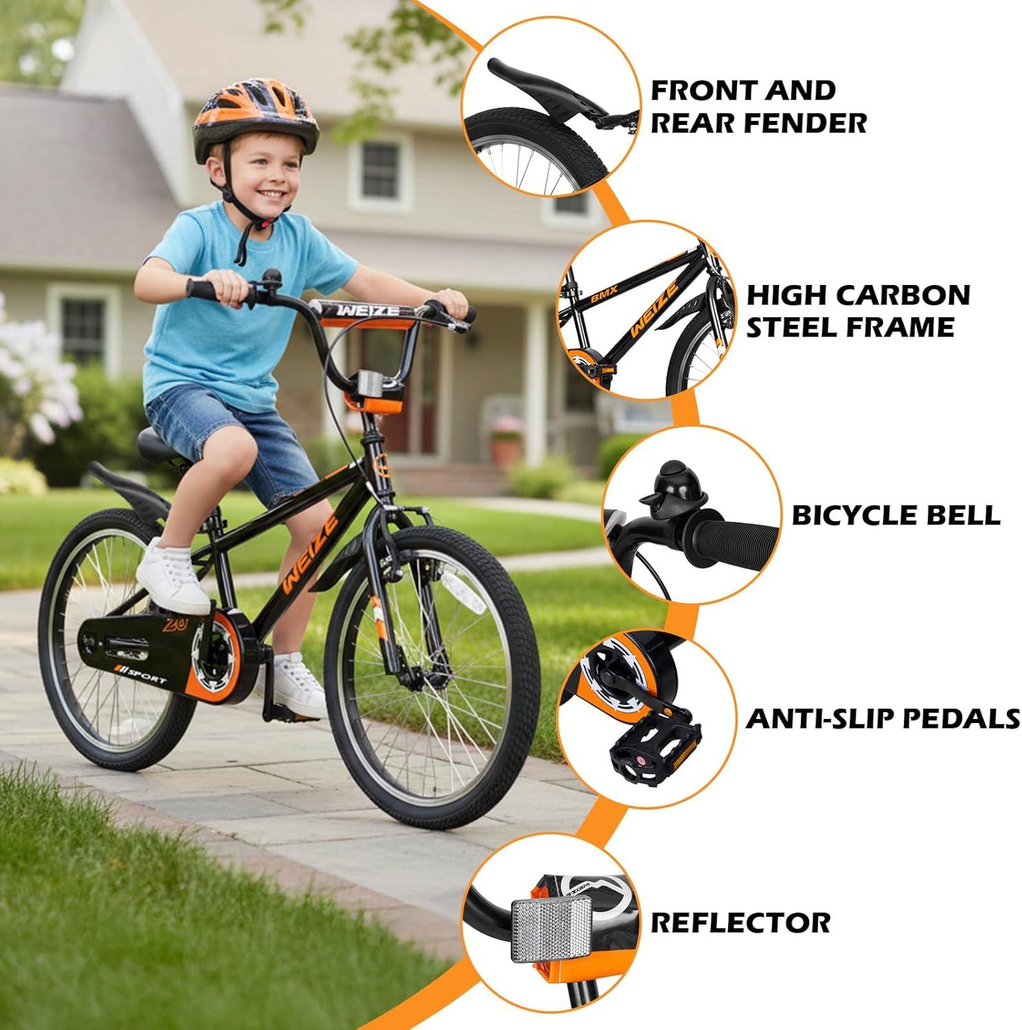 imageWEIZE Kids Bikes16 20 Inch Boys Bike for KidsBMX Style Bicycle for Boys Girls Ages 412 Years OldKids Bicycle with Adjustable SeatTraining WheelsFront and Rear FenderMultiple Color OptionsBlack